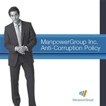 O ManpowerGroup em todo o mundo está empenhado em conduzir negócios com honestidade, integridade, confiabilidade e responsabilidade. Esta política, atualizada em 2015, é direta: a Companhia proíbe oferecer ou receber subornos ou pagamentos corruptos de qualquer forma. Ela se aplica igualmente a todos os colaboradores ManpowerGroup, independentemente da localização ou função, e também a representantes, fornecedores, clientes e parceiros de negócios.